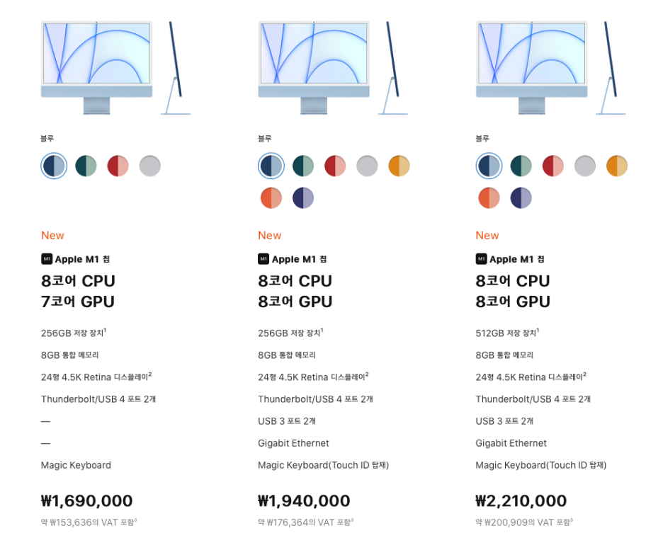 신형 아이맥의 사전예약이 시작되었는데, 크게 3가지 라인업으로 애플 공홈, 쿠팡, 11번가 등 애플코리아와 리셀러로 판매가 됩니다.