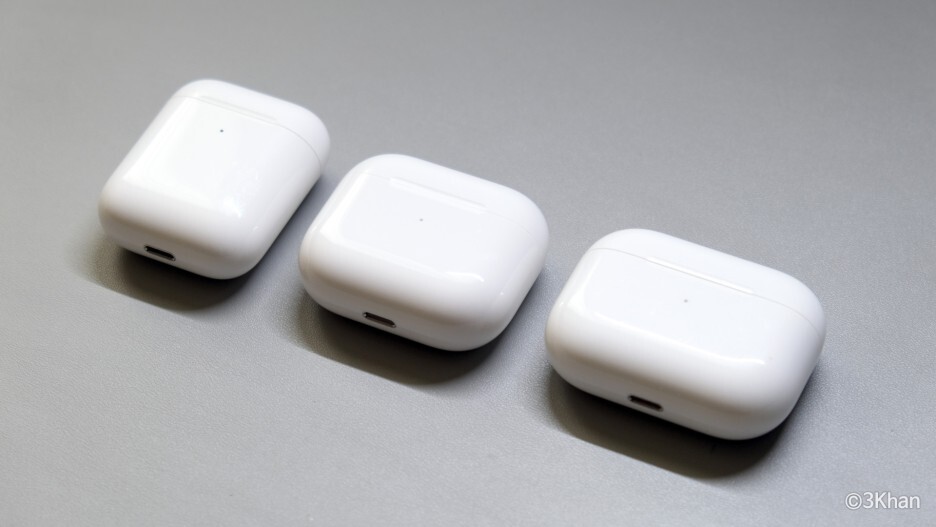 에어팟2와 에어팟3는 충전케이스 사이즈가 거의 동일하고 방향이 바뀌었을 뿐입니다.