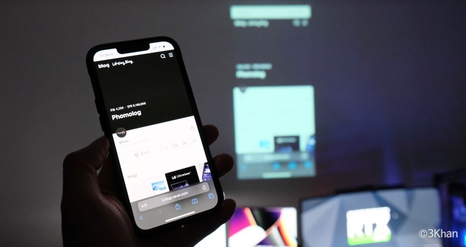그러면 손쉽게 아이폰이나 아이패드, 맥 화면을 무선으로 연결해서 프로젝터로 볼 수 있습니다.