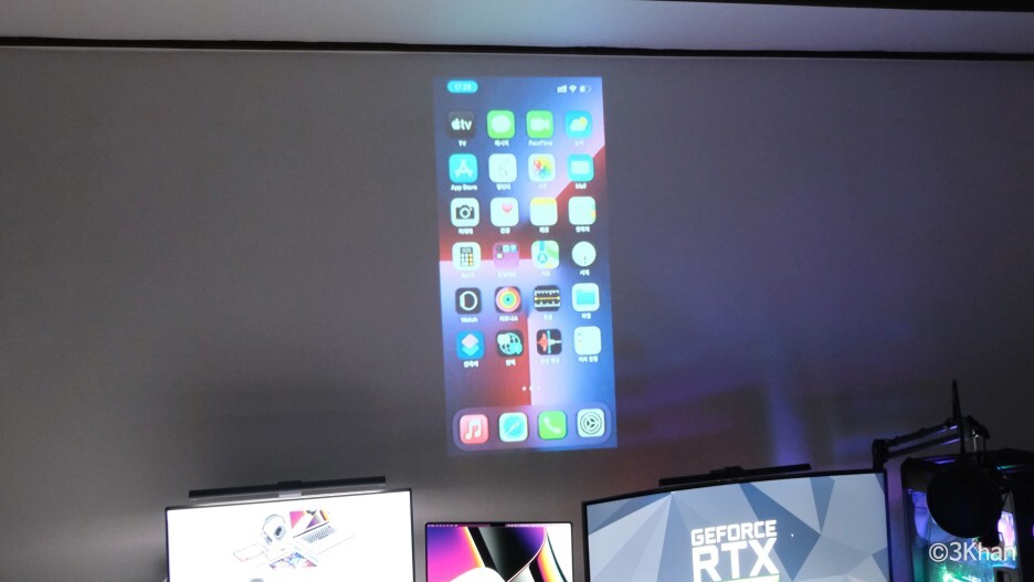 키스톤 역시 지원하지 않아서 수평 수직을 잘 맞춰서 스크린에 투사해야합니다.