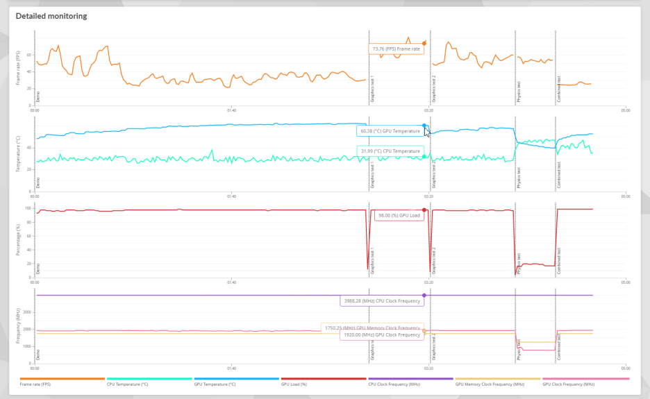 벤치마크 구동간 GPU 온도는 최대 60도 정도로 측정이 되었습니다.