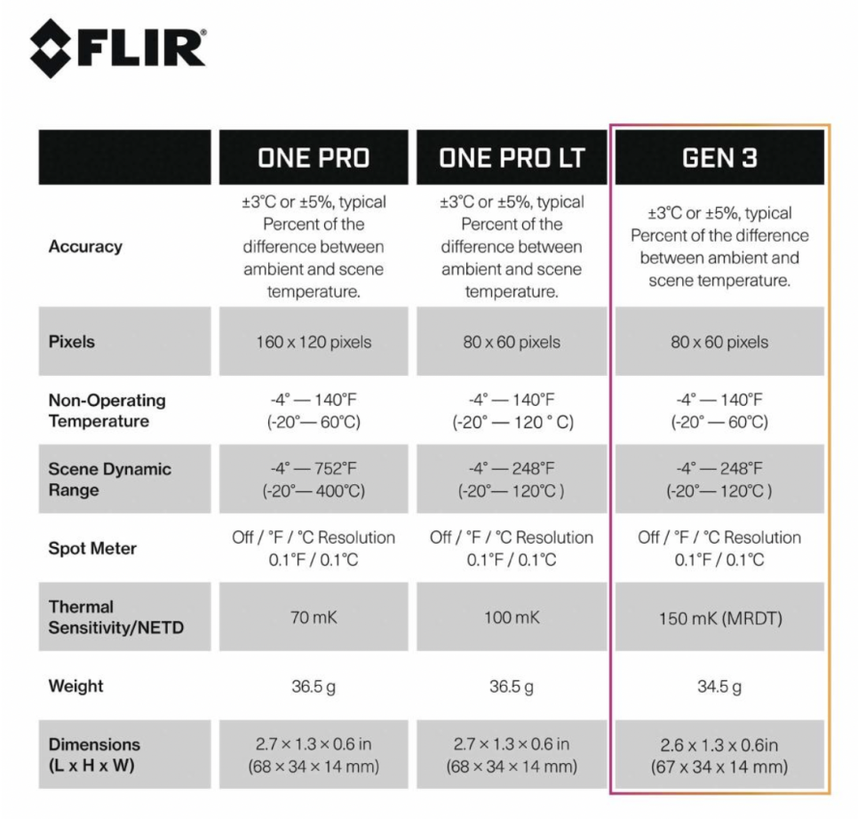 기존 플리어 원 LT와 거의 비슷하긴한데 스펙이 조금 더 업그레이드 되어 프로 모델 대신 저렴하게 쓸만한 스펙인듯 합니다.