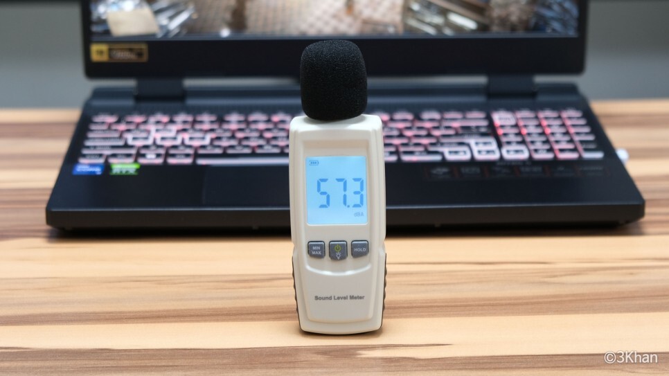 바로 앞에서 측정을 해보니 팬소음은 최대로 구동시 대략 60데시벨을 넘지 않는 결과를 보여줬습니다.