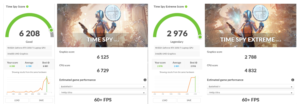 여러번 벤치마크를 구동해봤는데 대략 저 정도 점수가 나왔고 3060이나 3070에 비하면 당연히 낮겠지만 게임을 가볍게 즐기기에는 충분합니다.