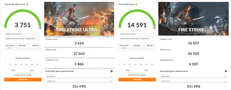 타임스파이와 타임스파이 익스트림, 파이어스트라이크와 파이어스트라이크 울트라를 각각 테스트해봤습니다.
