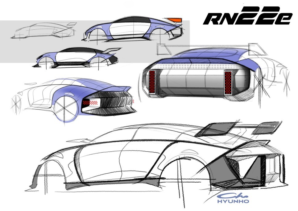 현대 RN22e 모델은 기존 RM 컨셉, 레이싱 미드십 컨셉과 다르게 전기차 기반으로 더욱 발전된 컨셉트카입니다.