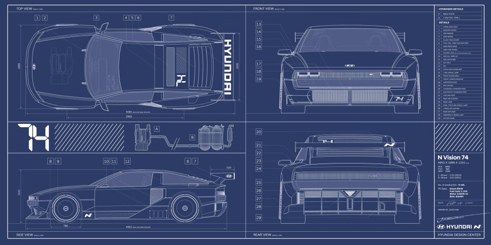 N비전 74 컨셉트카는 현대의 최초의 수소 하이브리드 고성능 차량 컨셉카입니다.
