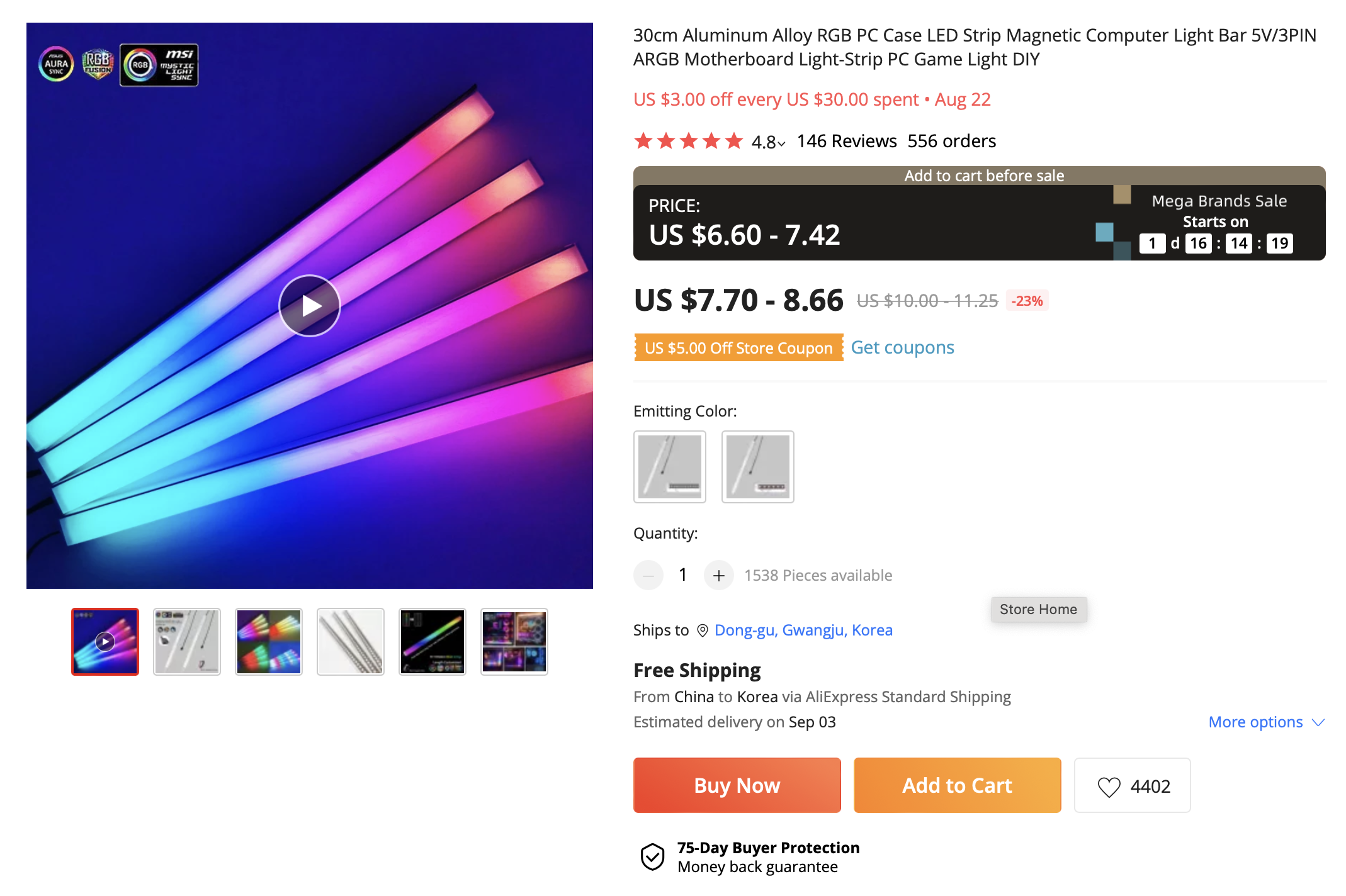 8월 22일은 알리익스프레스의 여름 세일. 메가 브랜드 세일이 시작되는 날 입니다.