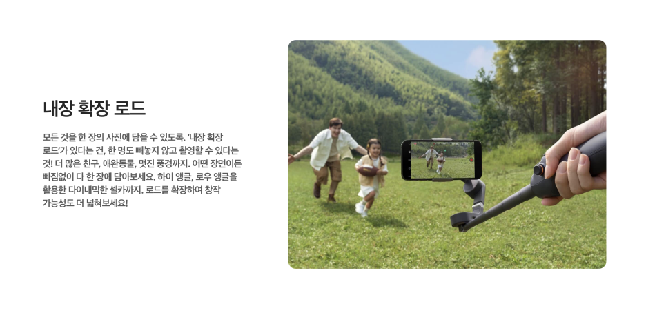 기존 OM5와 마찬가지로 OM6 역시 확장 로드로 셀카봉 용도로 다양한 앵글 촬영이 가능한데요.