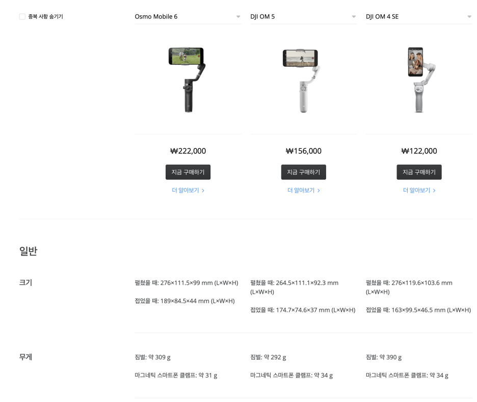 하지만 여전히 쿠팡 같은 곳에서도 DJI OM4 SE 같은 구형 모델도 구매 가능하니 고민은 해보는게 필요하겠네요.