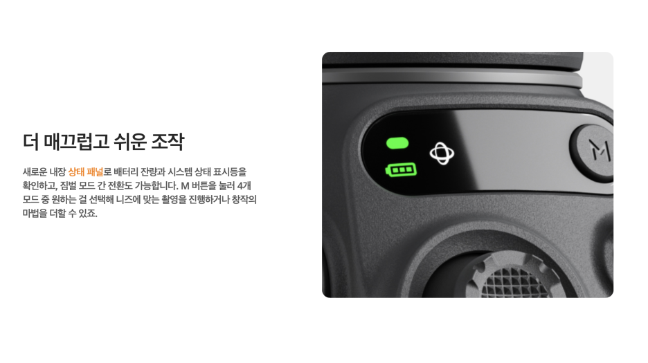 그리고 가장 귀찮았던 짐벌을 끄고 켜고, 앱을 실행하는 과정이 굉장히 스마트하게 바뀌었습니다.