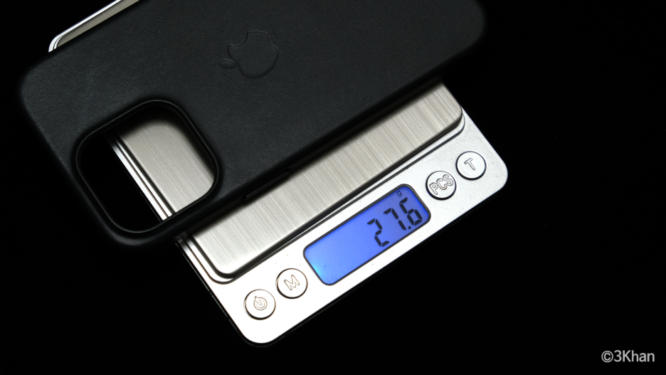 무게도 측정해봅니다, 아이폰14프로용 가죽케이스는 26.1g,