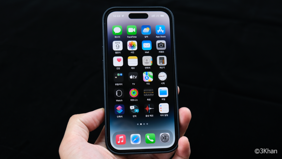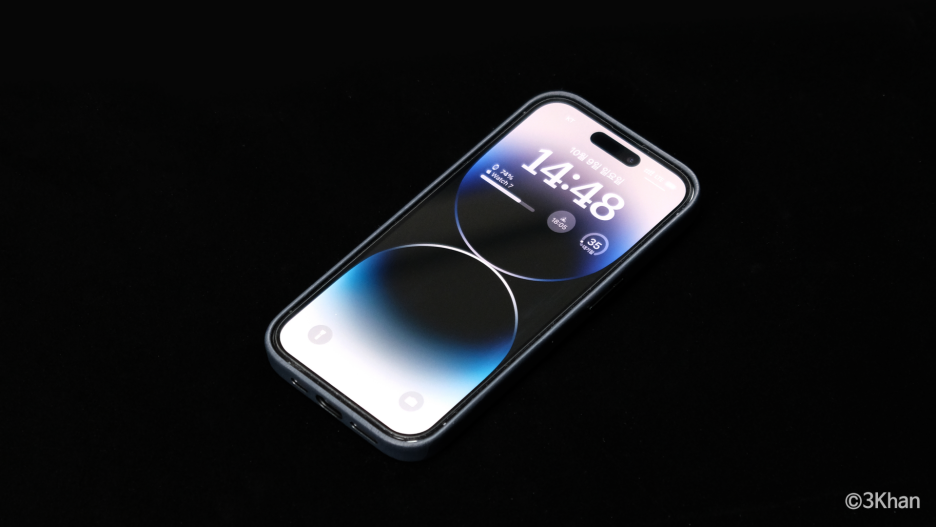 이제 제가 사용하는 아이폰14프로 스페이스 블랙 모델에 정품 가죽케이스를 착용해봅니다.