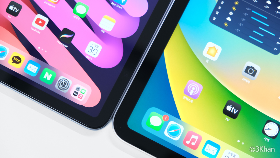 베젤 사이즈도 아이패드 미니 6세대보다 에어5나 패드 10세대가 살짝 더 두껍기도 하구요.
