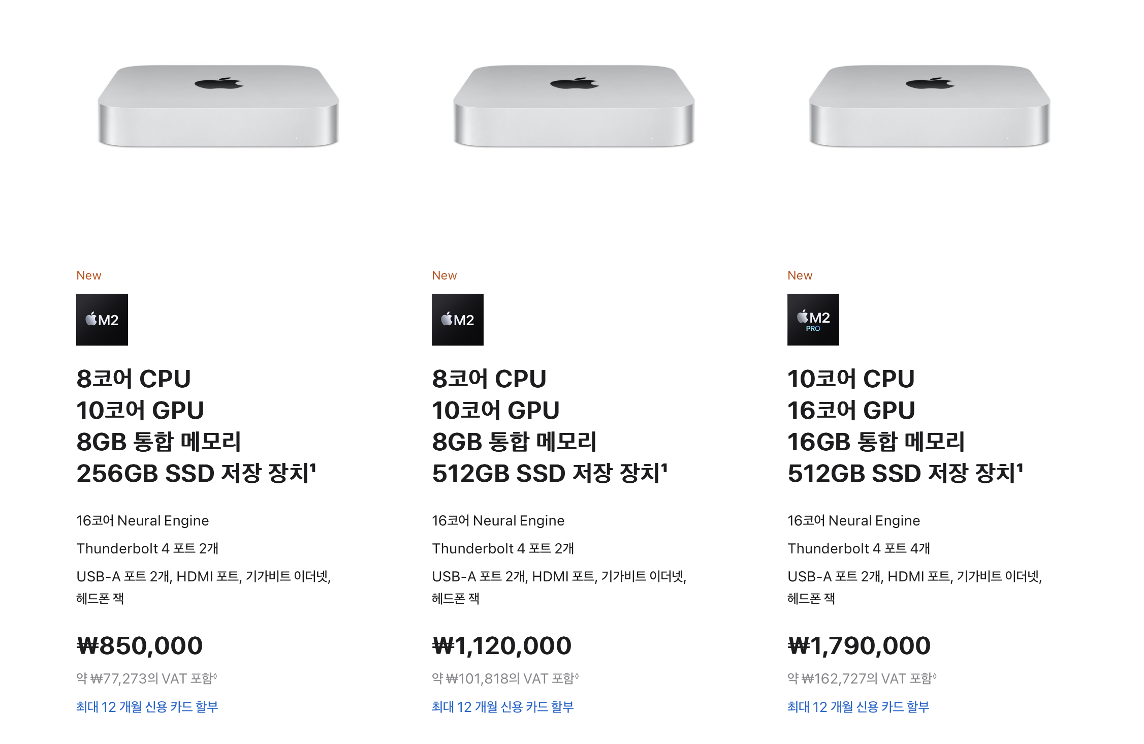 저장공간 역시 기존 M1 맥미니는 최대 2TB였는데 이제 다른 맥들처럼 8TB까지 선택이 가능하네요.