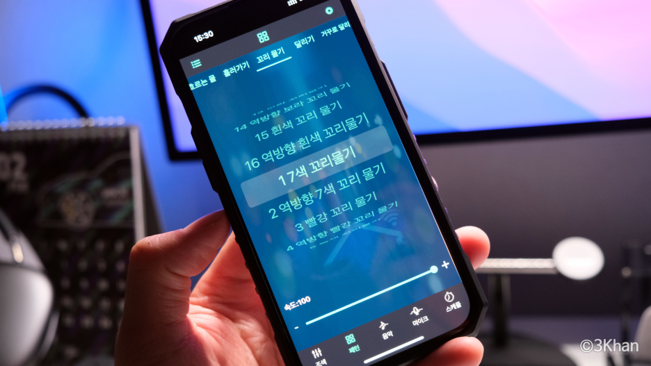버튼으로 설정할 수 있는 색상이나 패턴은 좀 제한적이긴 한데 연동 속도나 밝기 조절 등도 가능하고 은근 유용합니다.