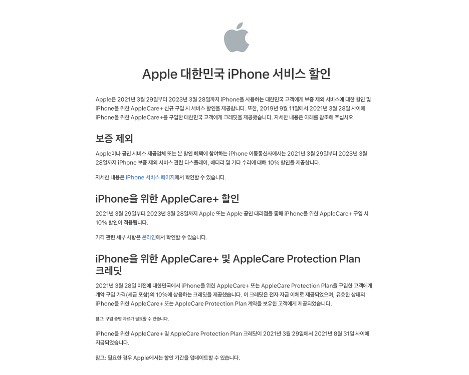 바로 애플의 대한민국 #아이폰 서비스 할인이 3월 28일부로 종료되고 10% 할인 가격이 다시 원상복구된다는 것인데요.