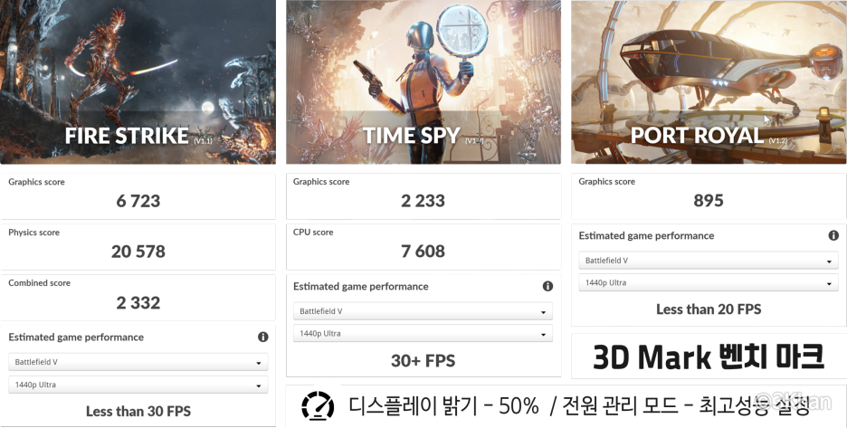 3D마크도 3종 실행해 봤는데 의외로 라데온 680M 내장 그래픽 성능이 꽤 괜찮습니다.