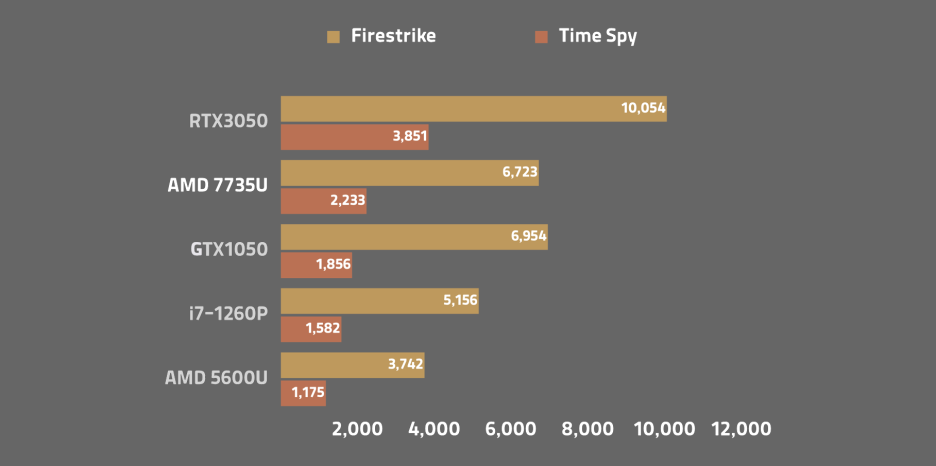 RTX3050이나 상위급의 그래픽에 비하면 부족한 점수지만 이제 내장 그래픽으로 GTX1050 정도의 수준까지 올라왔습니다.
