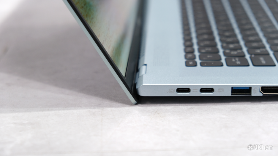 포트 구성은 충전은 C 타입으로 가능하며 USB 4.0을 지원하는 C타입 2개, USB 3.2를 지원하는 A타입 포트, HDMI 2.1 포트가 있고,