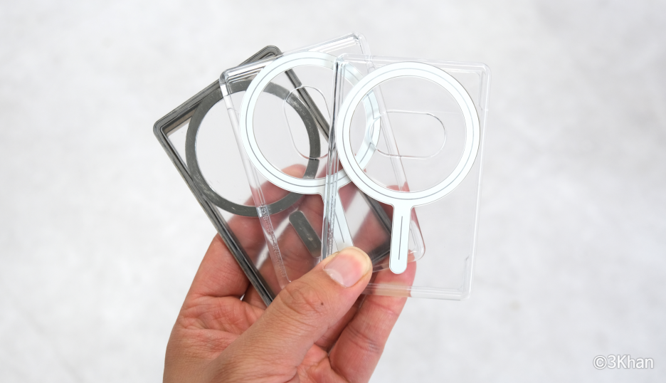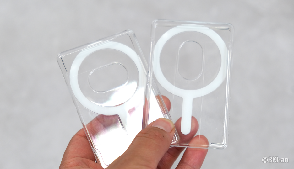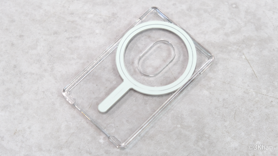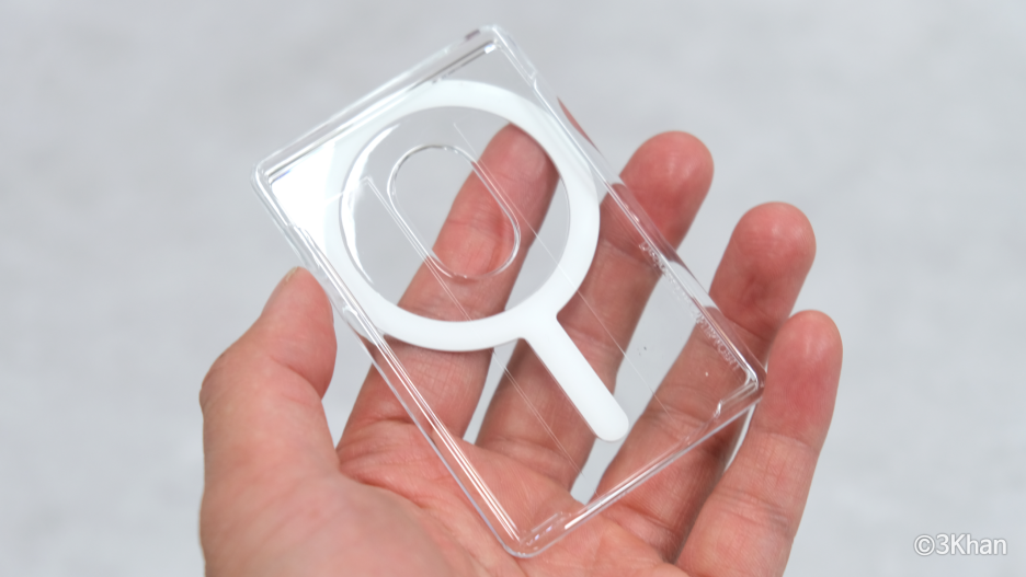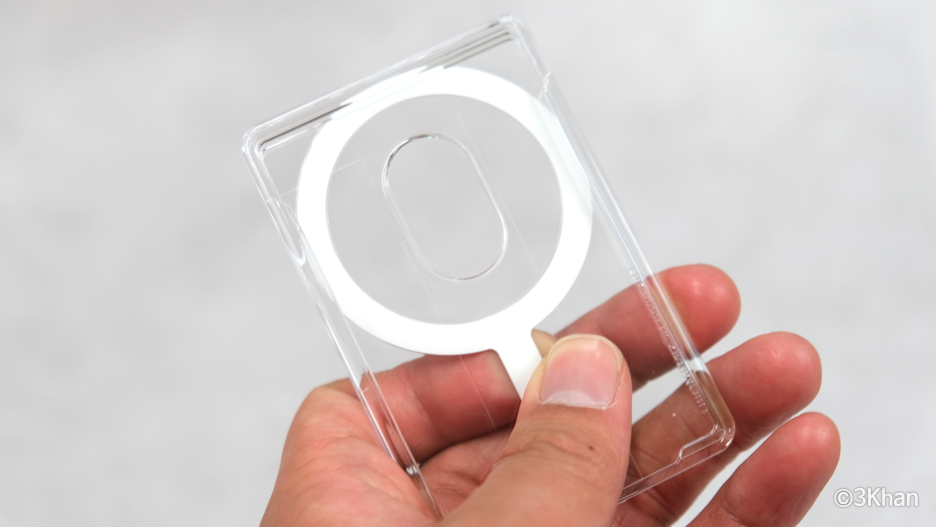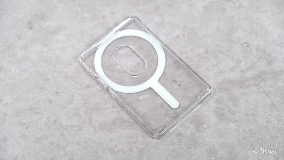 투명한 폴리카보네이트 소재로 되어 있고 맥세이프 자석 부분은 스티커로 따로 마감이 되어 있습니다.
