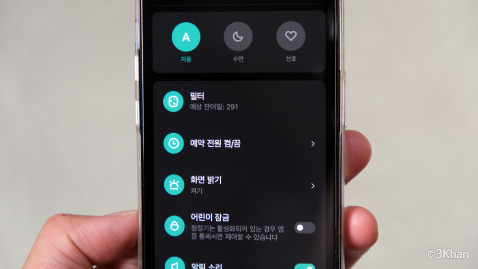 자동화 기능은 이전 제품에서도 잘 썼던 부분인데 일정 수준 공기질이 안 좋아지면 자동으로 구동이 되도록 설정이 가능합니다.