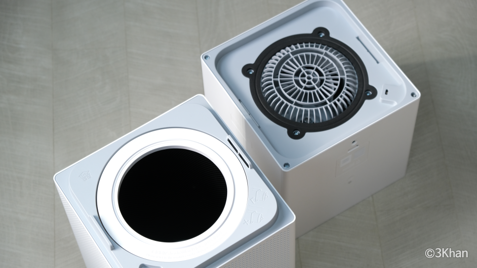 조금 더 각진 디자인에 필터 부분과 상단 팬 부분이 아예 분리된 디자인이라 좀 독특하긴 합니다.