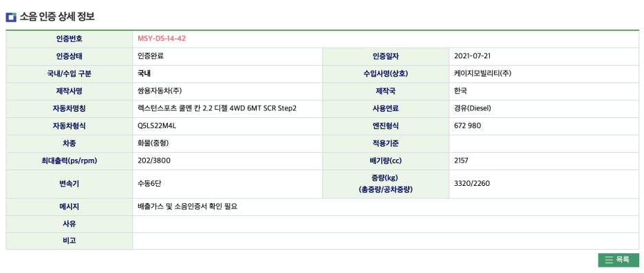 한가지 더 흥미로운 사실은 바로 확장형 모델인 렉스턴 스포츠 칸에도 수동 모델이 추가된다는 점인데요.