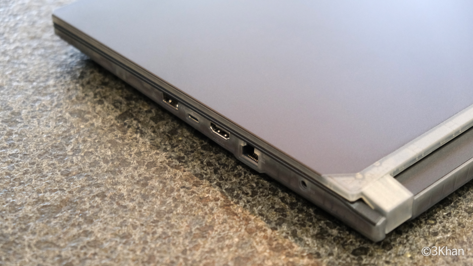 반대편에는 USB-A포트, 화면 출력을 지원하는 C타입 포트, HDMI 포트, 유선랜, 전원 포트가 있습니다.