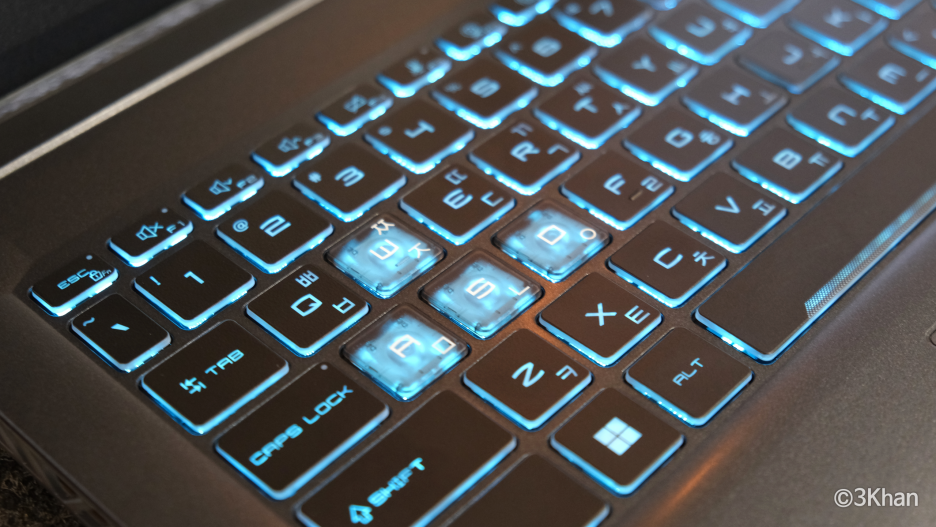 키보드 디자인도 WASD에는 투명한 캡을 써서 디자인 포인트를 주었는데 참 독특한 노트북입니다.