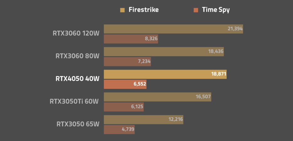 FHD 게이밍 기준에서는 RTX4050 정도만 되어도 충분히 게임 즐길만한 성능이지 않을까 싶은데요.