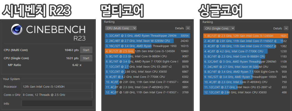 i5-12500H보다는 확실히 떨어지기는 하지만 저전력 위주의 프로세서들보다는 확실히 성능이 낫습니다.