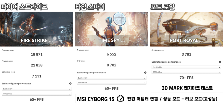3D마크도 3종 돌려봤는데 위와 같이 타스 1.8만점, 파스 6천점, 포트로얄 3700점 대가 나왔습니다.