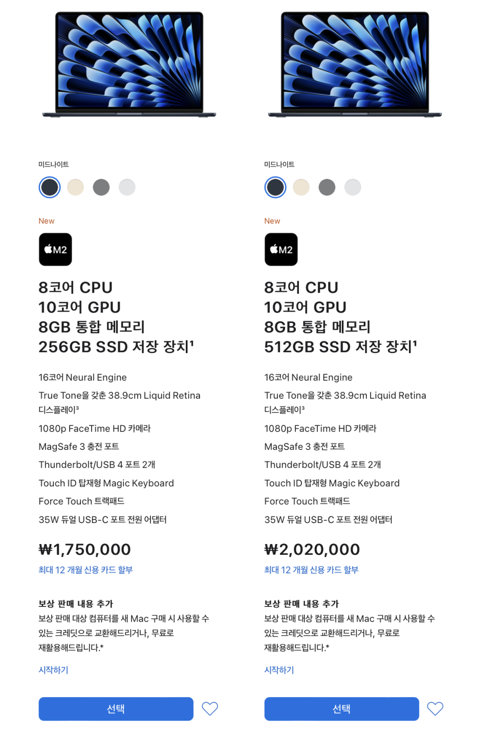 가격도 옵션 조금 넣다 보면 오히려 윗급 모델인 14인치 맥북프로 M2 모델이 더 나은 경우도 있어서 잘선택하셔야 할 것 같습니다.