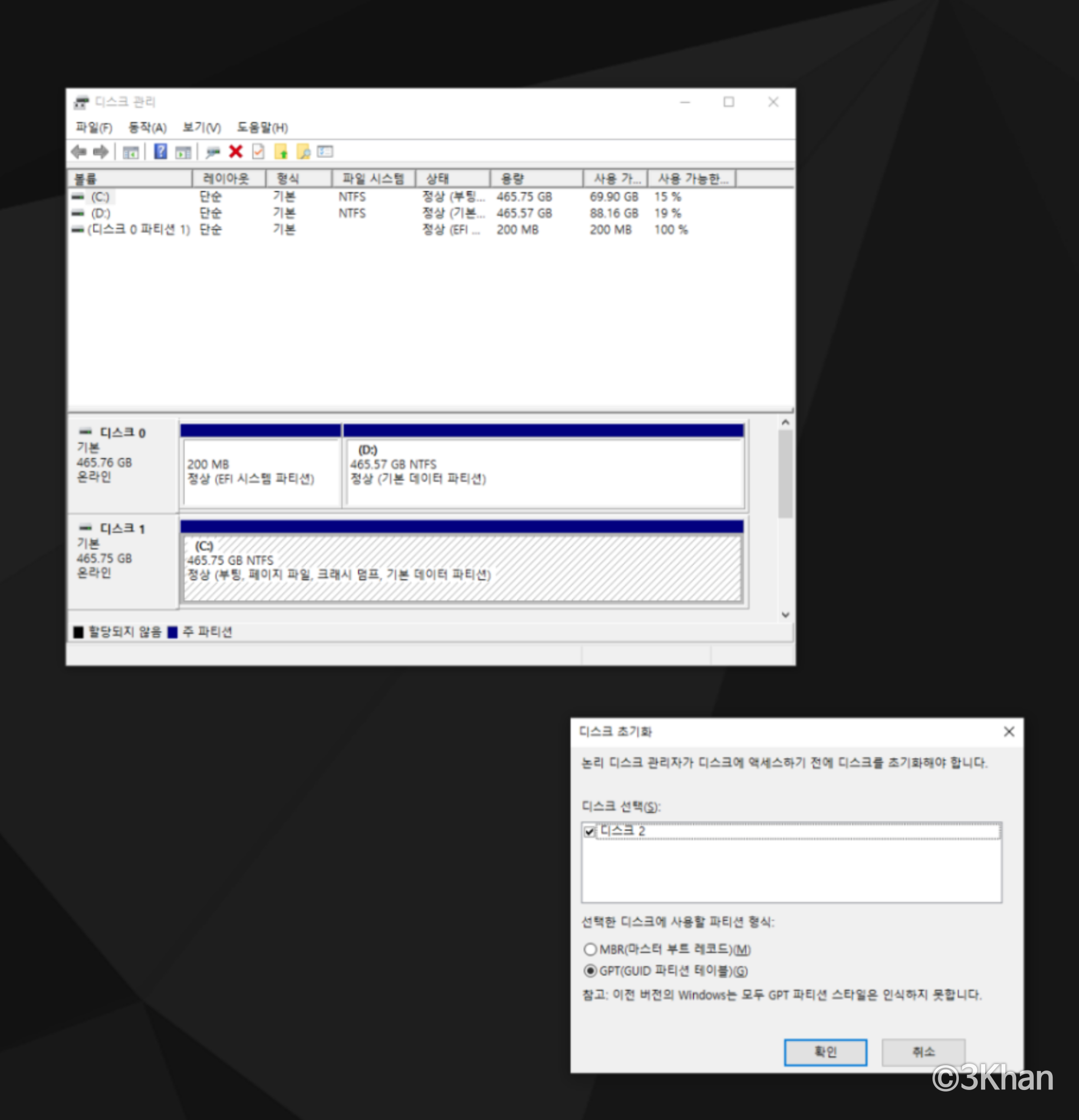 처음 실행하면 이렇게 디스크 초기화 팝업이 뜨는데요.