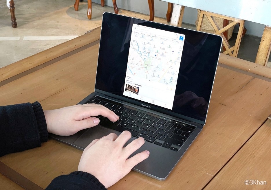 거기에 M1 맥북에어 프로는 트랙패드가 있기 때문에 핀치투 줌이나 멀티 제스쳐를 아이폰처럼 그대로 쓸 수 있는것도 장점입니다.