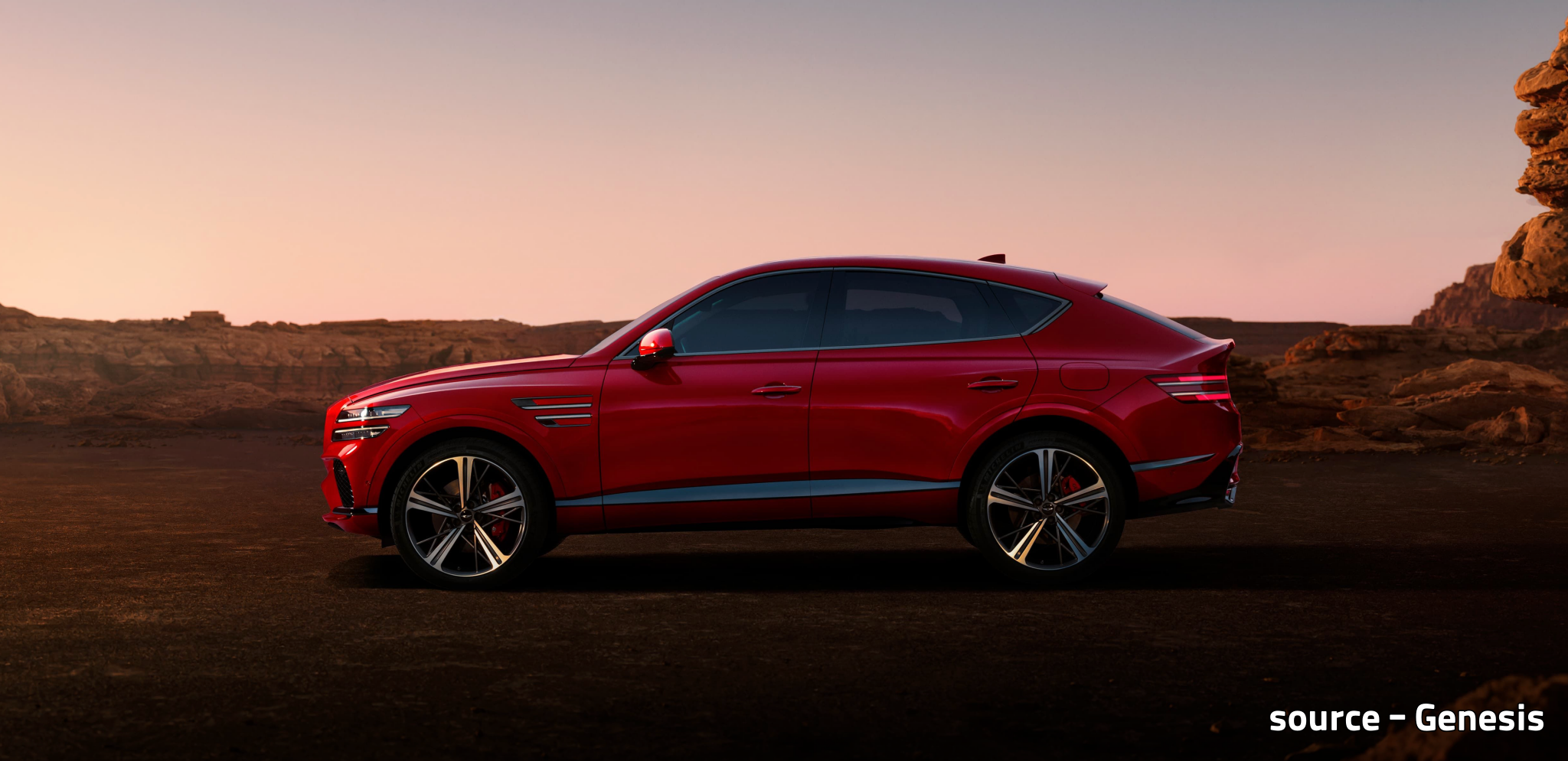 전체적인 라인은 GV80과 부품을 공유하는 부분이 있을 만큼 비슷해 보이지만 뒤를 아예 확 날리면서 전혀 다른 디자인이 되었습니다.