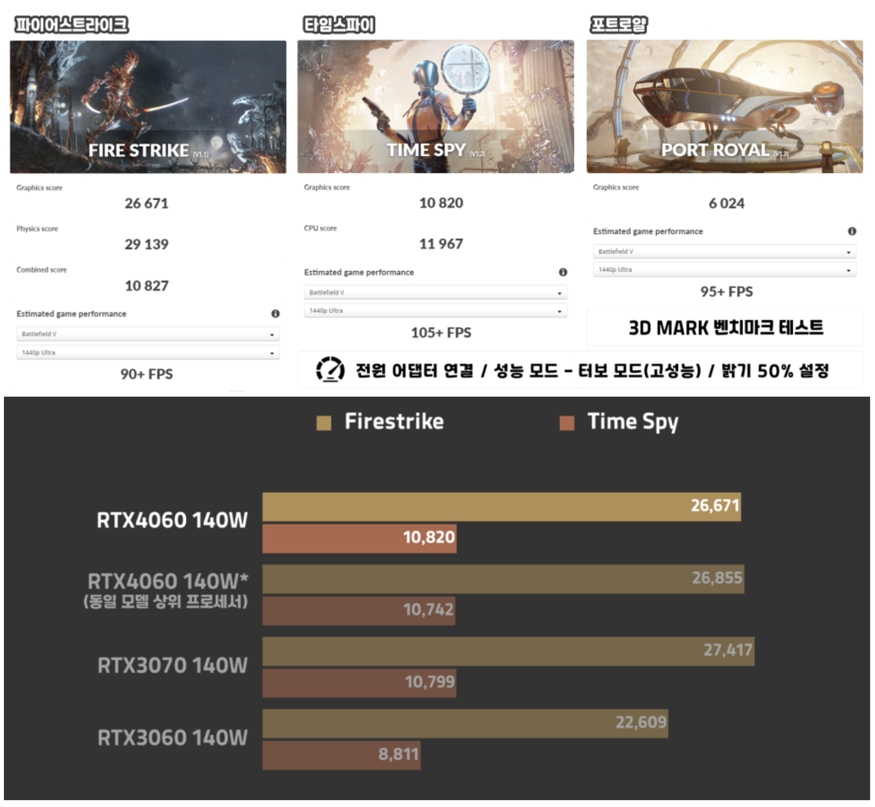 전체적인 성능은 딱 RTX 4060 140W 모델만큼 나왔는데요.