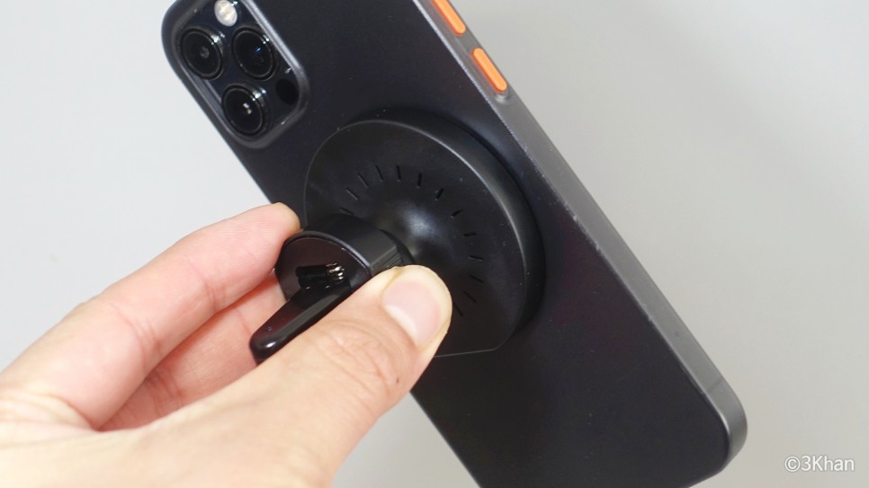 시중에 나와 있는 무선충전 거치대에 맥세이프 자석만 따로 구매해다가 붙여서 거치 용도로 쓰고 있었습니다.