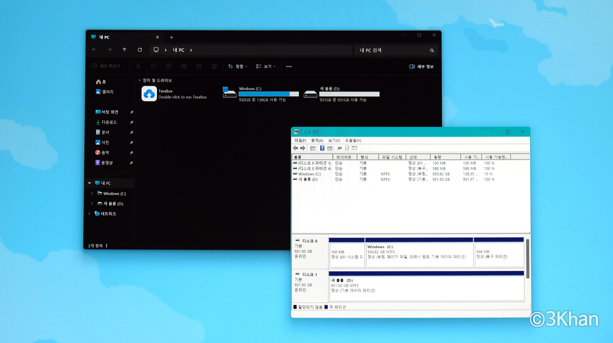 이렇게 D드라이브가 정상적으로 추가가 되었고 이제 특가로 구매한 P5 Plus SSD를 사용해 주면 됩니다.