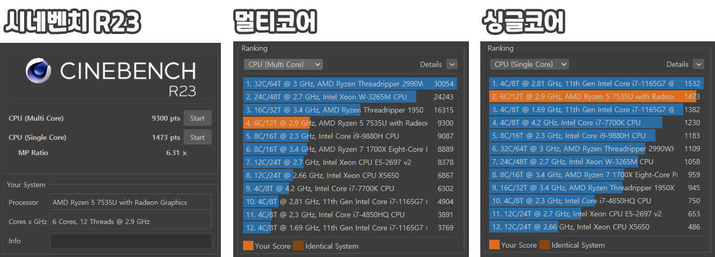 시네벤치 R23 기준으로 점수를 측정해 봤는데요.