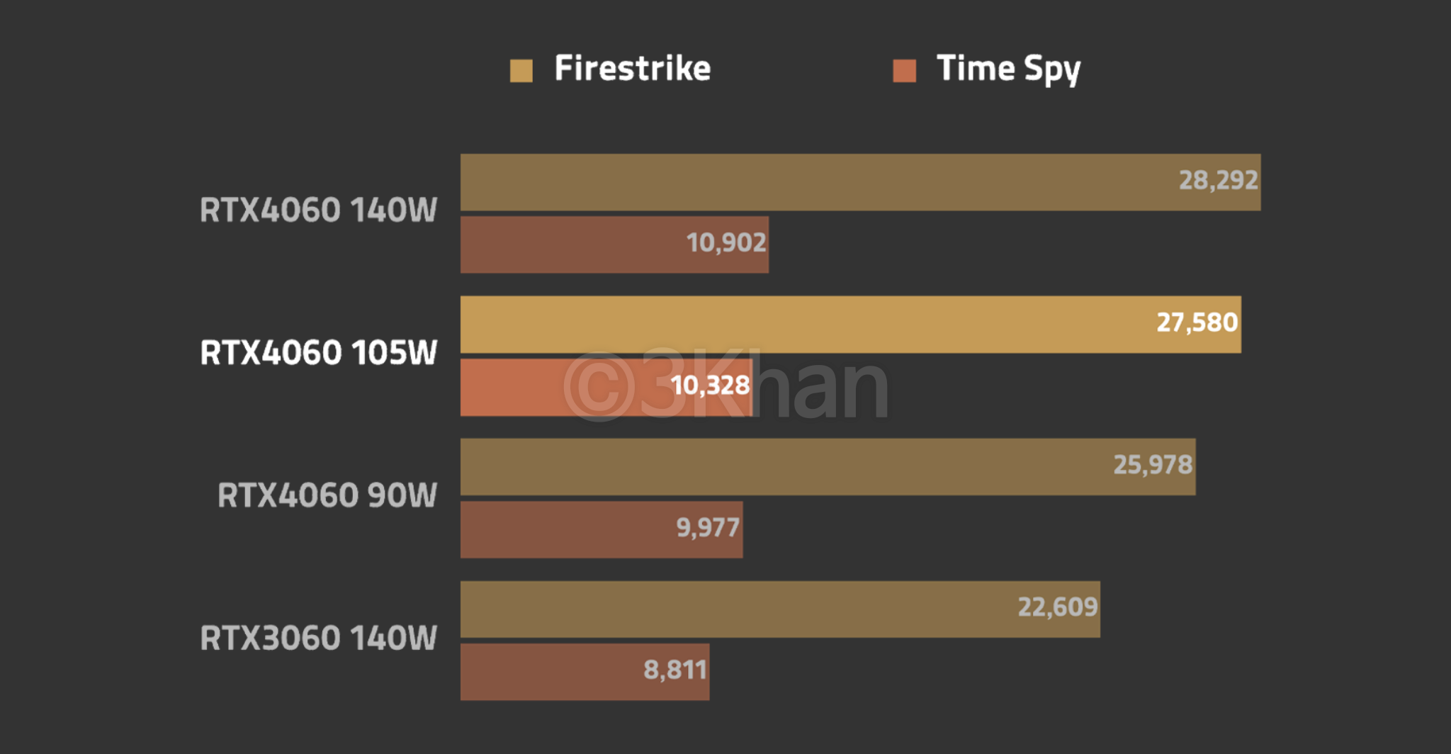 그래픽 벤치마크도 3D 마크로 돌려봤는데 105W 급 RTX4060이 제일 궁금했습니다.
