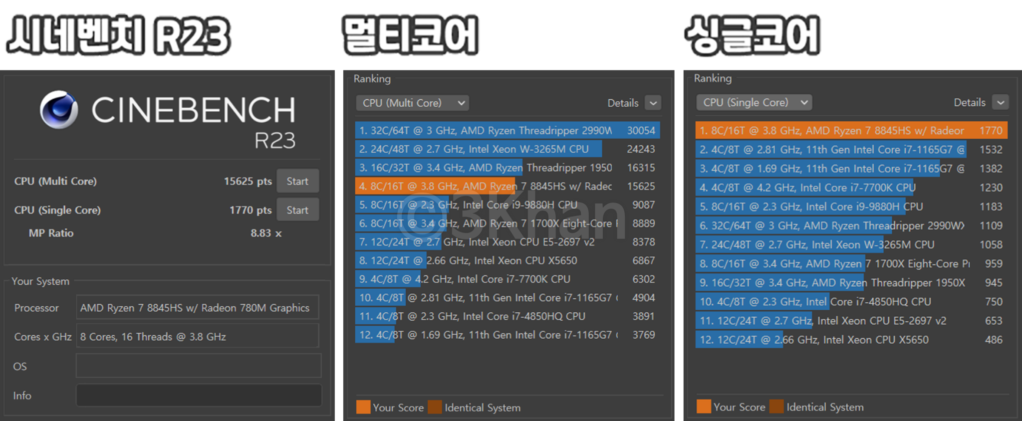 최근 90W, 105W, 140W 모두 사용해 보고 테스트해 봤는데 CPU도 동일한 8845HS라서 비교하기가 적당했는데요.