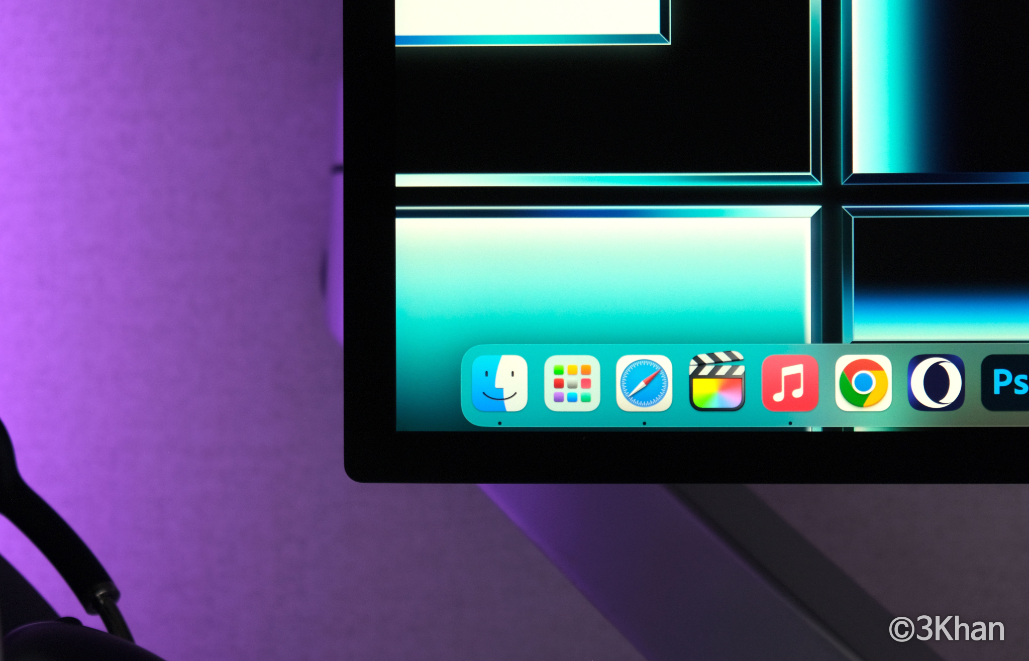스튜디오 디스플레이에 들어가는 패널은 균일도나 빛샘 정도는 양호한 것을 뽑았는지 사진상으로는 이렇게 보여도 실제는 봐줄 만합니다.