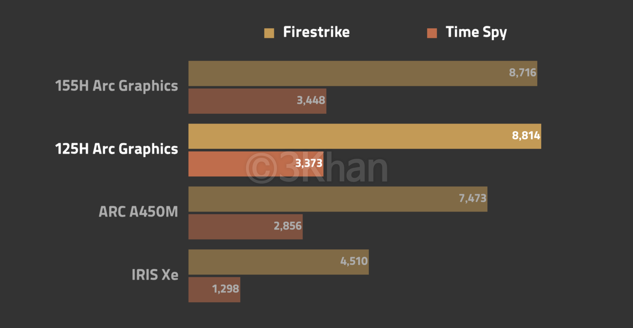 기존 아크 외장 그래픽은 CPU가 아니라 별도의 외장 그래픽 칩셋이었음에도 점수가 생각보다 높지는 않았는데요.