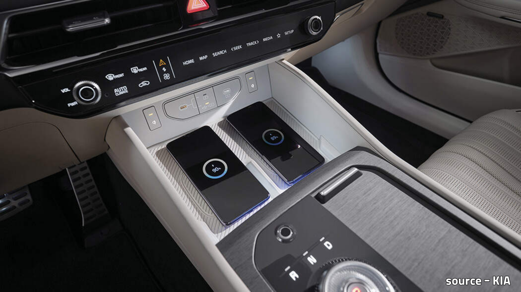 실내 디자인 변화와 함께 그랜저 대비 장점인 옵션도 있는데 스마트폰 무선 충전을 2개까지 할 수 있습니다.