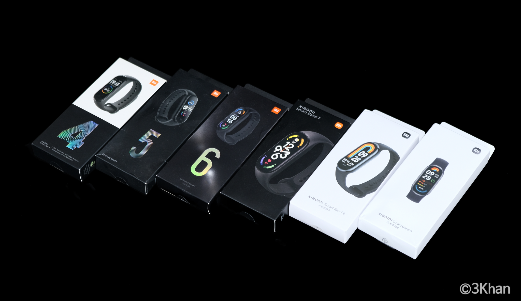 다시 미밴드 9 이야기로 돌아와서 미밴드 5부터 9까지 쭉 세워봤습니다.