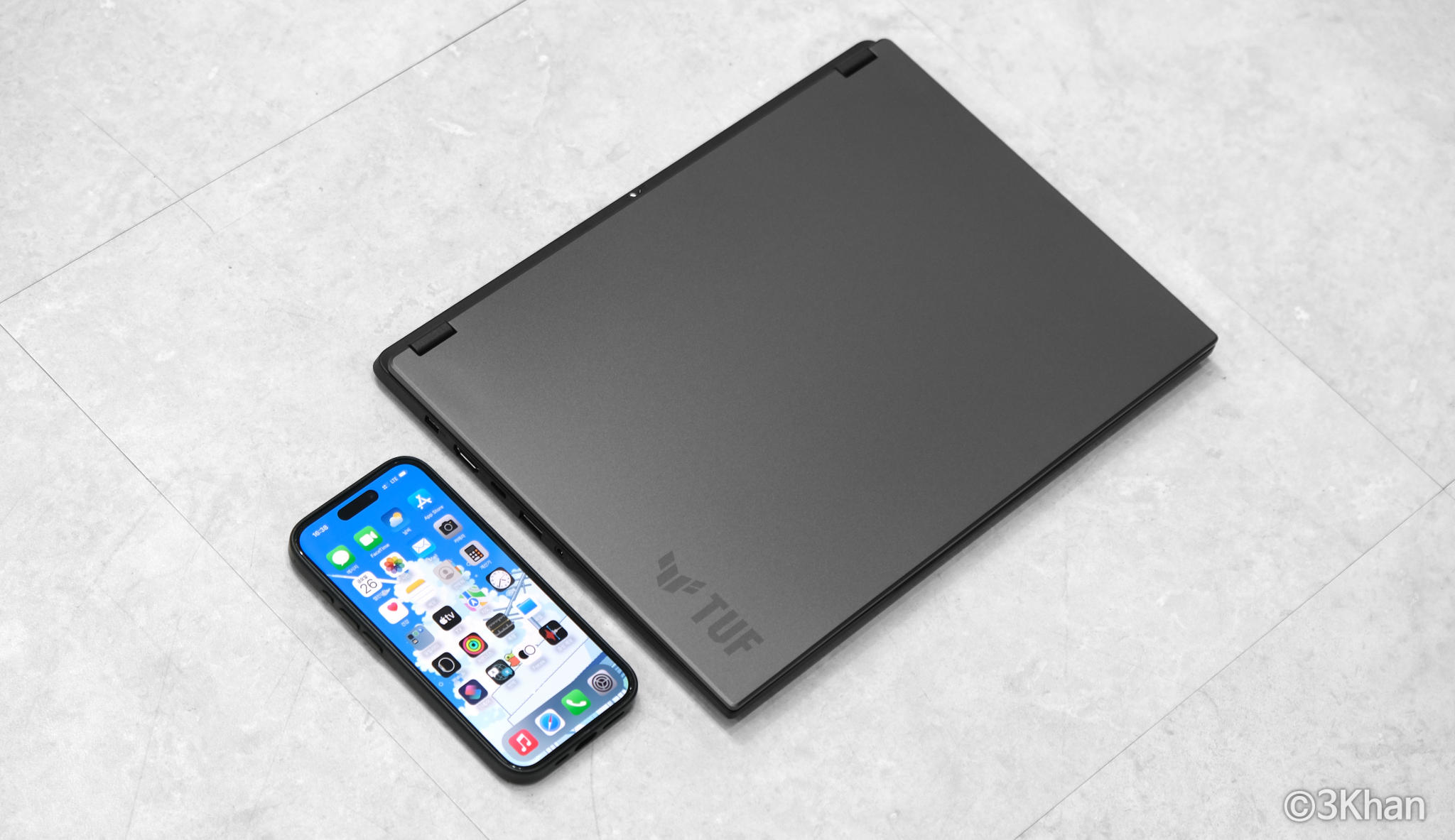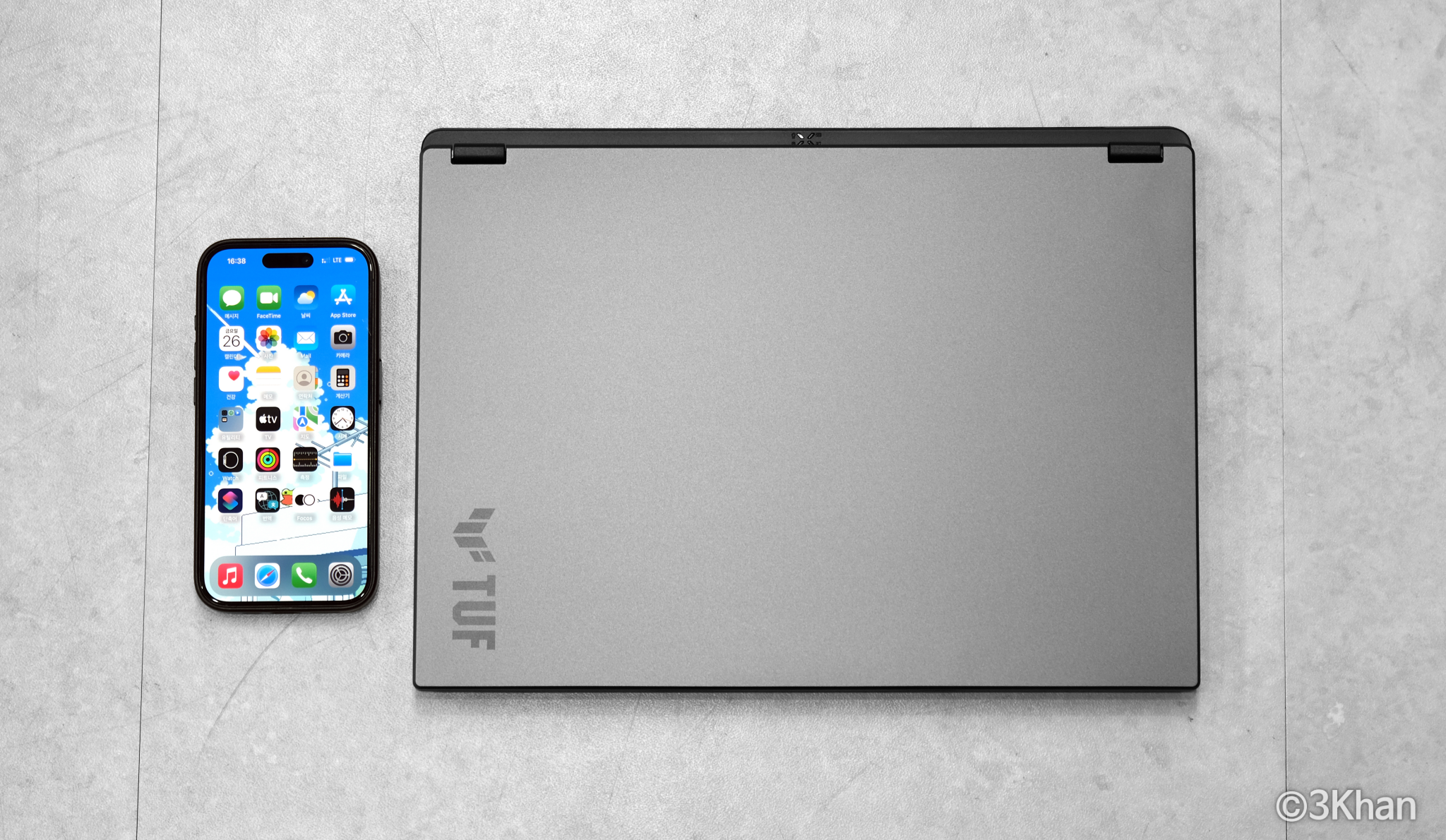 14인치가 얼마나 작은 사이즈인가 하면 제가 쓰고 있는 아이폰 15 프로와 나란히 크기를 비교해 보면 대략 이 정도 느낌입니다.