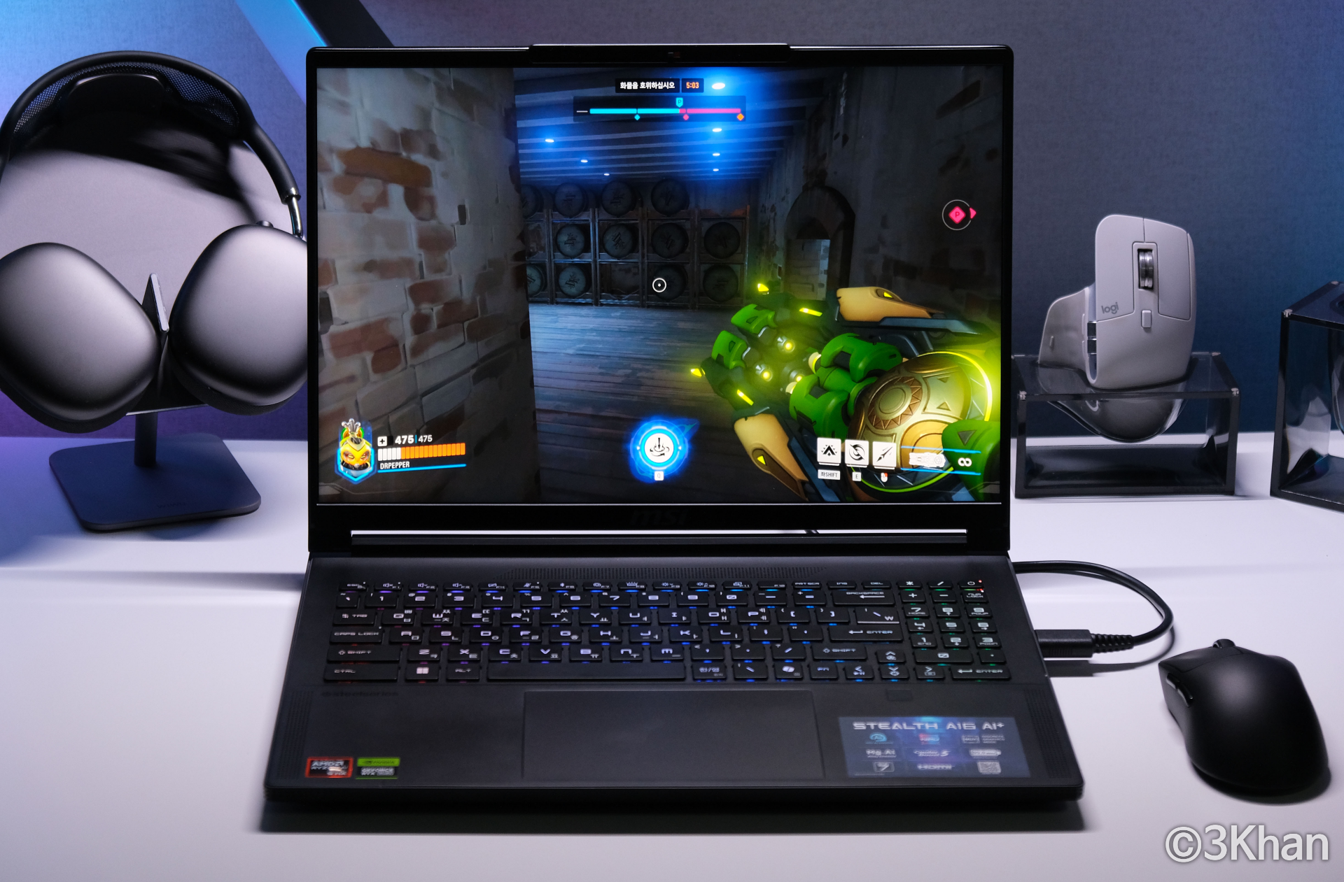 성능으로 라이젠 AI 9 HX 370을 탑재하였고 외장 그래픽은 105W TGP의 RTX4070을 탑재하였습니다.
