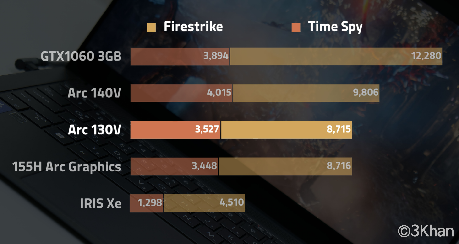 이 제품에는 아크 130V 내장 그래픽이 들어가 있는데 3D 마크 벤치마크 결과는 대략 이 정도 점수입니다.